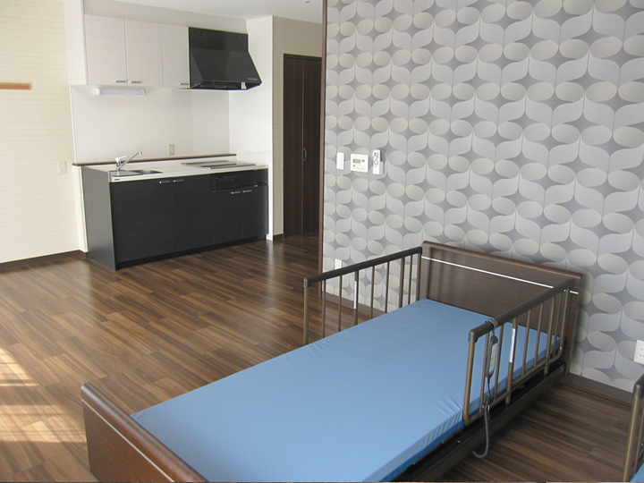 | 設備 | トイレ、洗面台、クローゼット、床暖(1Fユニットのみ)、エアコン、空調機、ナースコール、 介護ベット、テレビ端子、カーテン、シャワー室(夫婦部屋のみ) |